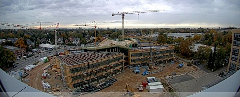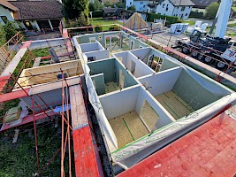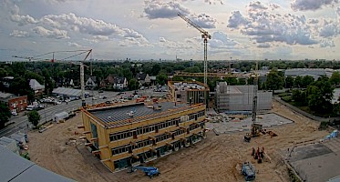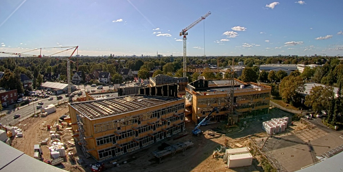 der Wandelemente in 6 Bauabschnitten und einer vorgefertigten Rhombus Fassade bei einem Bauabschnitt.